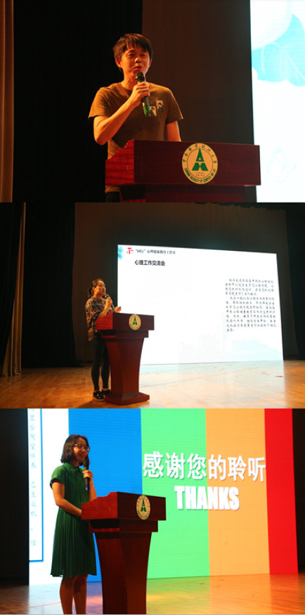 闭幕会现场,通过展播精彩的视频回顾了各个学院在活动节期间的精彩瞬间,心理健康工作站代表对活动节成果逐一汇报。统数学院心理工作站站长方旭峰总结站长交流会上的心得,介绍全校16个工作站的工作亮点和特色,并分享了统数学院如何坚持“只有一个学生也要开好一场特别座谈会”的小故事;新闻学院工作站站长黄艳介绍了“同行工作室”为学生开展咨询服务和团体辅导的情况;金融学院工作站站长张晓涵从实际工作出发,结合学院特点,分享了阳光坊、倾心坊、守护坊在学院工作站发挥的重要作用。