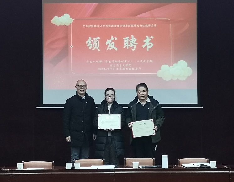 陈亚奇为兼职思政课初任教师导师颁发聘书。曾宪洪、刘强、荣枢、徐春艳等4名马克思主义学院专业课教师被聘任为《形势与政策》《毛泽东思想和中国特色社会主义理论体系概论》《马克思主义基本原理概论》《思想道德修养与法律基础》课程导师,聘期一学期,通过一对一,指导初任教师提高业务能力,明确教学要求。