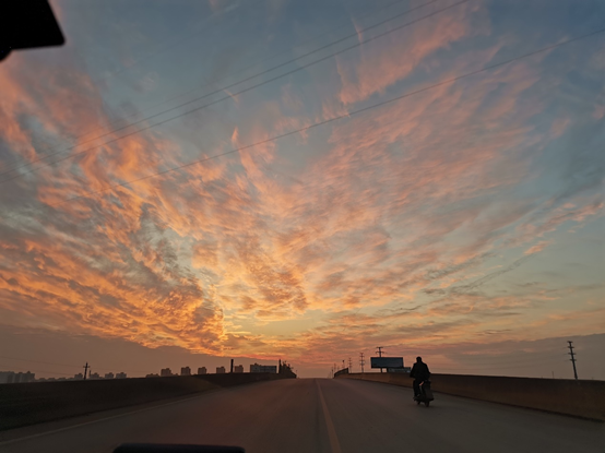赤橙晚霞,奔波路人,无尽道路。因为有了绚烂的夕阳,生活也变得美好。一切不再空洞,向远方汇集,看到的是温暖。我们在路上,看到的不仅是过客、晚霞和道路,还有胜利的光辉!相信:战疫必定胜利!