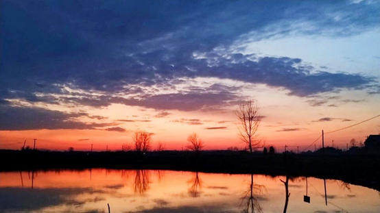 云那边的木杆似有点羸弱,但也是一株连着一株,在半空中承起了一道道电线,在云的映衬下如一幼龙。而在水的倒影中,却不见电线身影。电不正是如此?空中的电线似龙,纵横天下,福泽四方,水中的电缆似蛟,深藏不露,兢兢业业,给时代烙上了自己的印记;就像这次疫情,医护们用自己伟大的行动也给时代烙上了属于自己的印记。湖面中的倒影,清澈、透明,预示着在不久的将来我们会迎来一个澄澈、干净、没有病毒的世界。