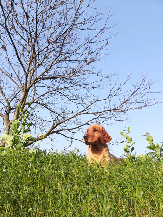 这是一只流浪的金毛犬,但是自从来我家之后,就留下来了。那天乘太阳暖和就给它洗了个澡,然后我和姐姐出门采鼠曲草。我们走在前面,狗狗像往常一样跟在我们后面,柔和的阳光照在它的身上,伴随着徐徐清风,不一会儿,身上的毛发就全干了。姐姐弯腰采田里的鼠曲草,狗狗趴在田岸上的草丛中,就这样呆呆地眺望着远方,夕阳西下,蓝天碧草和狗狗完美交融,那一瞬间刚好被我记录了下来,真是一个惬意的傍晚呀。