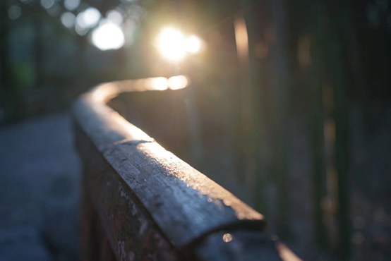 下午五点的古漪园,阳光透过林间洒下来,打在蜿蜒的篱笆上。