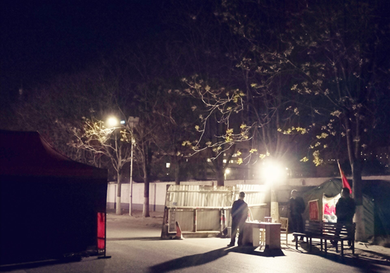 这是我家乡的三名志愿者在夜晚坚守岗位、检查村中来往人流的场景。疫情期间,这样的行为虽平常但却十分动人。在新冠肺炎爆发之际,正直严冬,新年伊始,他们冒着感染的风险主动请求为村民服务,严防死守一整天。而现在,转眼到了四月中旬,这场战争胜利在望,他们依旧在坚守着,奉献着。他们这些志愿者虽不是白衣天使,但却也以自己的方式释放着光和热。我在他们的身上看见了春天,望见了彩虹,我向坚守在自己岗位的守村人致敬!