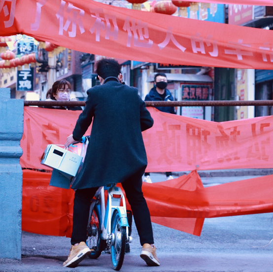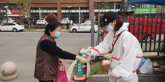 2020年4月,武汉暂未完全摆脱新冠病毒带来的负面影响。为保证居民健康和社区正常秩序,社区志愿者挺身而出,顶着风险为社区居民的出行保驾护航。图中志愿者正在为社区居民测量体温,志愿者们本能像平常人一样居家隔离陪伴家人,但他们却在社区最需要的时候出现。当问到他们是否感到辛苦,他们却微笑着摇摇头:“只要能保障每一位居民平安出行,再辛苦也值了。”