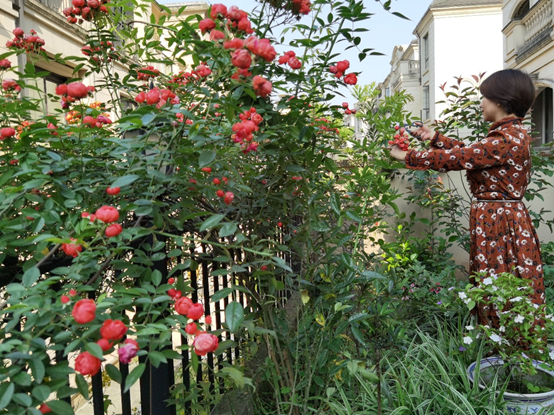 在清晨第一缕金色的阳光照耀下,妈妈来到家里的小花园,正在剪下美丽的钻石玫瑰。疫情阻隔了外面的世界,但只要怀着一颗对生活热爱的心,就在自己园的一方净土中种下钻石玫瑰,山茶,鸳鸯茉莉,到了这个特殊的春天它们也是绚烂的彩虹。
