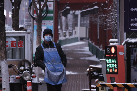 冷清的街道上偶尔有一两个戴口罩的人匆匆走过,只有环卫工人还在街道上有条不紊地为一个新春天的到来做准备。