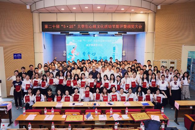 (学生通讯员 熊政)6月1日下午,我校举行第二十届“5·25”大学生心理文化活动节展评暨颁奖大会,校党委常委、副校长覃红,党委学生工作部副部长范献龙,党委学生工作部副部长、心理健康教育咨询中心主任葛明,心理健康教育咨询中心副主任杨子云,各学院党委副书记、心理健康教育工作站站长,心理中心专职教师以及获奖教师和学生代表参加活动。