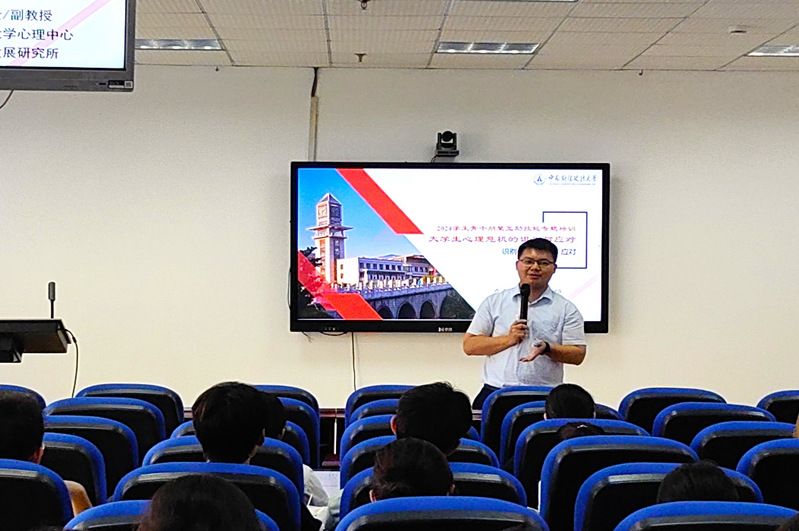 余金聪副教授首先从问题出发,引起同学们对于心理危机的注意和思考。接着就大学生心理概况、大学生自杀的识别和应对、重点关注人群的特征四个方面展开培训,循序渐进,逐层深入。随后通过介绍大学生心理危机的相关数据和概念,让同学们对心理危机有了初步的专业认识,然后列举了不同的心理危机案例,对案例中的心理危机进行分析,在互动中讲解心理危机的识别方法和技巧。接着,余教授进一步讲解如何正确应对心理危机,引导同学们在相互实践中掌握应对方法。余教授鼓励大家积极留意身边人潜在的心理危机,并运用所培训的知识及时干预,预防悲剧的发生。
