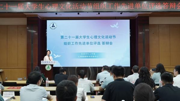 (通讯员 都城安 摄影 季洁)为响应教育部《关于开展首个全国学生心理健康宣传教育月活动的通知》,落实“立德树人”根本任务,深化“五育并举”工作要求,深入推进学校心理健康教育工作,5月28日下午,我校第二十一届大学生心理文化活动节组织工作先进单位评选答辩会在文潭楼4楼报告厅举行。武汉理工大学心理健康教育中心副主任孙灯勇教授,我校工会常务副主席余启军、党委学生工作部副部长刘晓燕、党委研究生工作部主任付慧娟及大学生心理健康教育教研室主任何红娟作为答辩评委出席,各学院(中心)心理健康教育工作站的站长、负责人,以及心理健康教育咨询中心的专职教师们到场参加。答辩会由校心理健康教育咨询中心专职教师都城安主持。