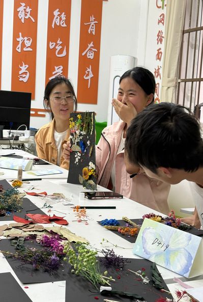 在创作环节,每位参与者都展示着自己的独特风格。原本素不相识的同学们,在这场创作中自然而然地成为了彼此的观众和知音。心理委员迪拉热一一拍下同学们制作的作品,记录下这珍贵的瞬间。