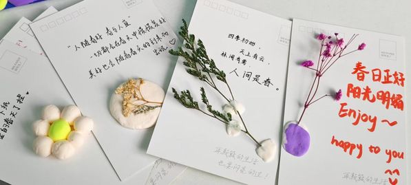 活动尾声,每位参与者都收到了上次活动小伙伴的明信片祝福,也开始写起了对下次活动参与者自己的春日祝福。最后,大家蘸取颜料在指印树上按下彩色指印,层层叠叠的指纹最终汇聚成一棵枝繁叶茂的大树,象征着个体情绪在集体共鸣中生长为向上的力量。