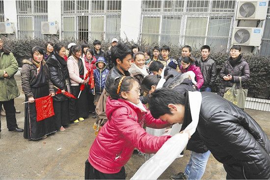 2012年1月30日,玉树“感恩之旅”团队到达武汉,我校志愿者参与此次迎接仪式,并陪同其进行了为期5天的交流学习活动。
