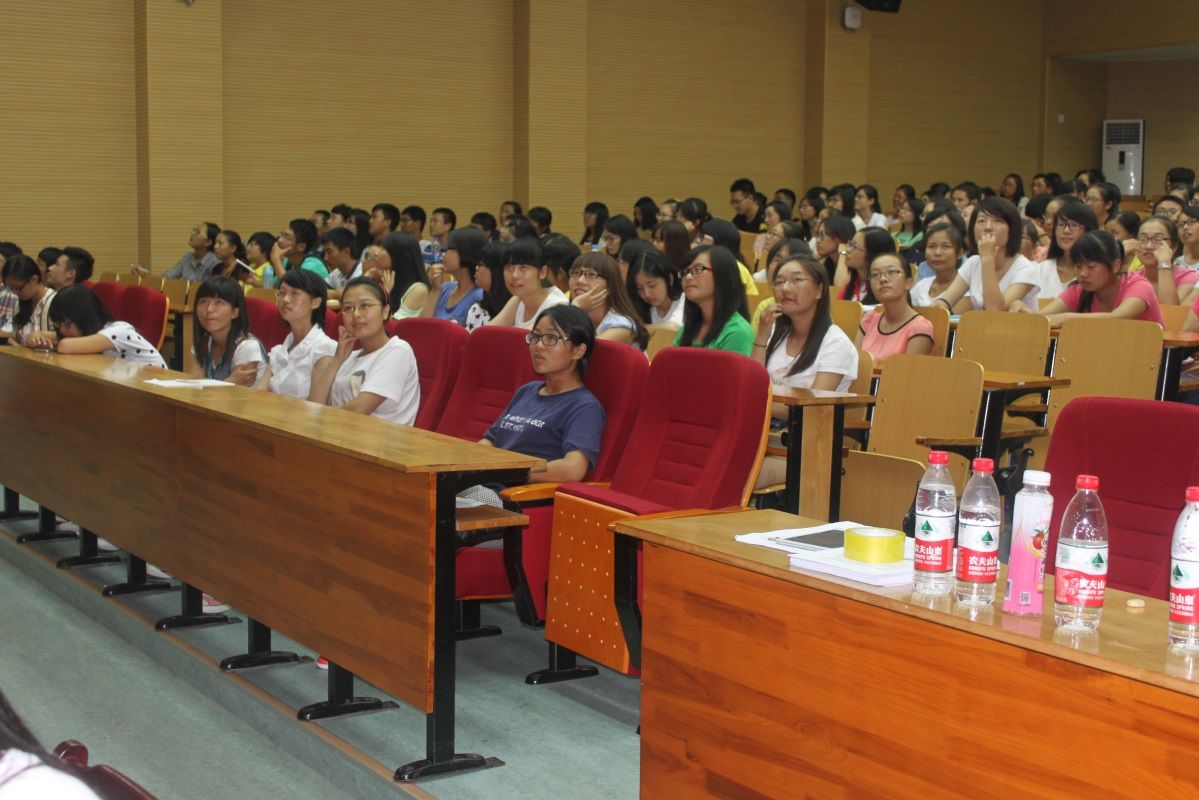 临近七点,大批新生伴随着大会激昂的音乐步入宣讲会现场。14届新生到场人数可观,坐满报告厅大部分座位。