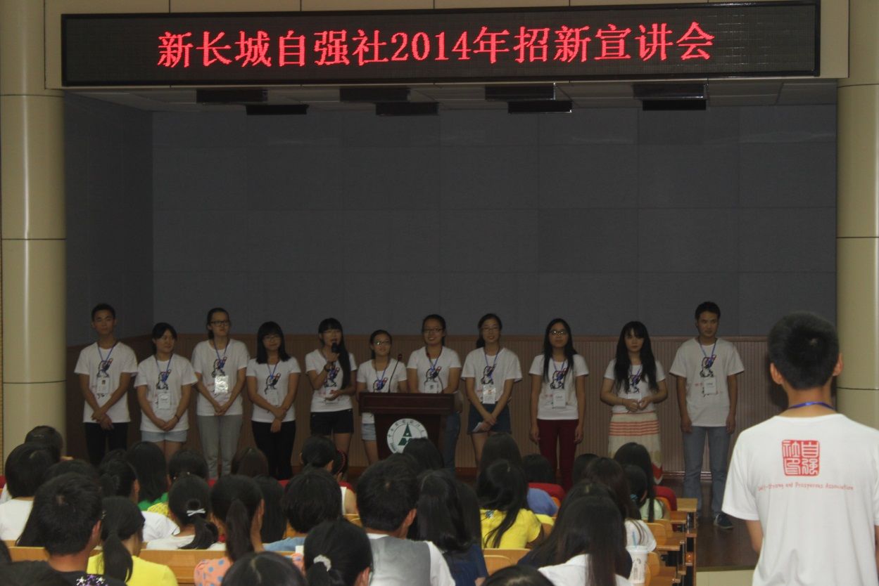(记者 张林清 摄影 利恬静) 9月28日晚19:00,新长城米兰电竞·(中国区)自强社在文谭楼一楼报告厅如期召开2014年招新宣讲会。学工部的邓宏军老师,也是新长城自强社的指导老师出席了本次宣讲会,自强社前任社长谢泽龙以及自强社第九届干部全体与会。大会由自强社的兼职与家教服务中心部长张静怡和秘书与人力资源部副部何黎主持。