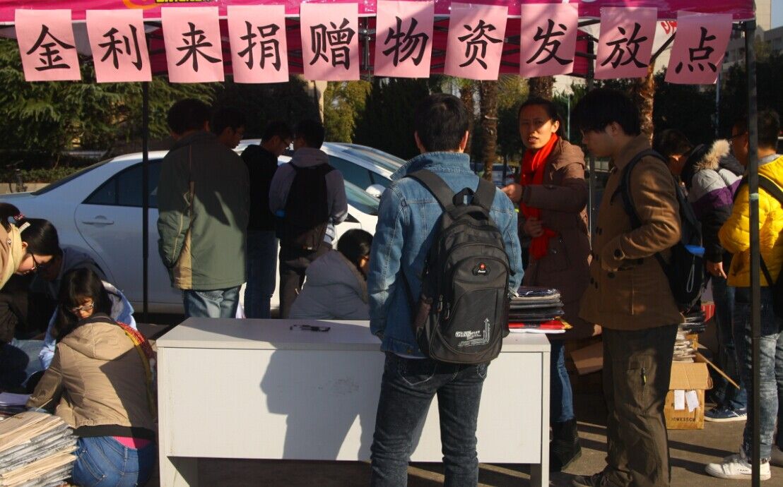 今天下午,金利来服装(中国)有限公司捐赠物资顺利发放,我校共400名学生获赠金利来衬衫或T恤,每件价值近千元。
