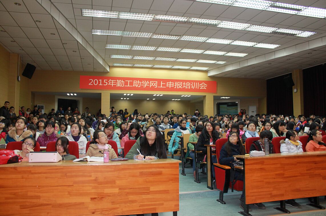 12月26日晚7点,室外气温零度,可容纳300余人的邓析堂已找不到一个空位,想从大门挤进去没有一番功夫是绝对不行的。这是我校勤工助学管理系统学生培训的现场。