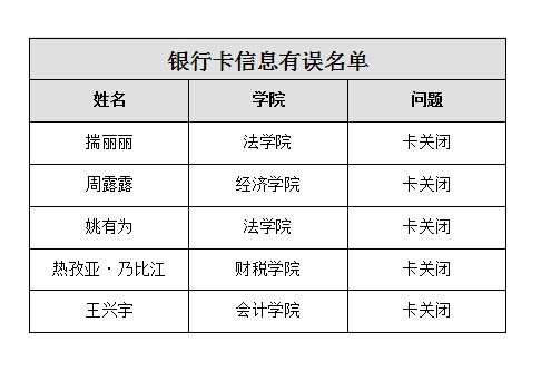 财务部通知有部分学生的中国银行卡注销或关闭,致使4月份的国家助学金未能打入获助学生中国银行卡中,名单如下: