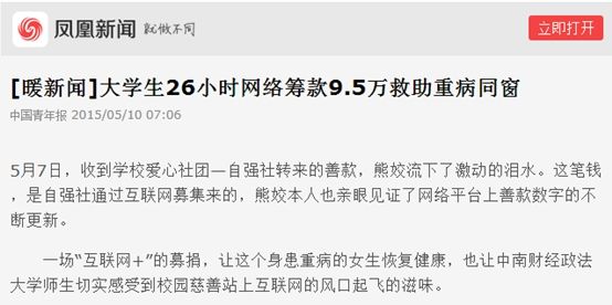 大学生26小时网络筹款9.5万元救助重病同窗 校园慈善募捐站在互联网风口