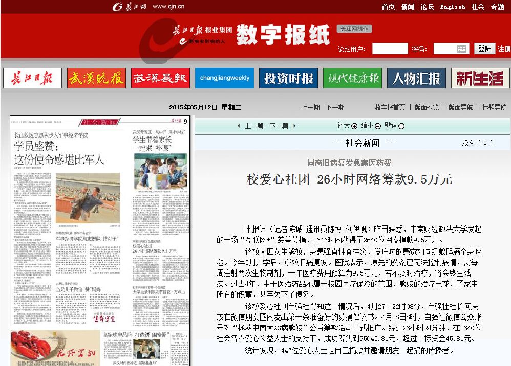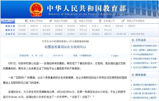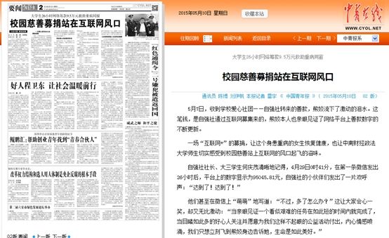 大学生26小时网络筹款9.5万元救助重病同窗 校园慈善募捐站在互联网风口