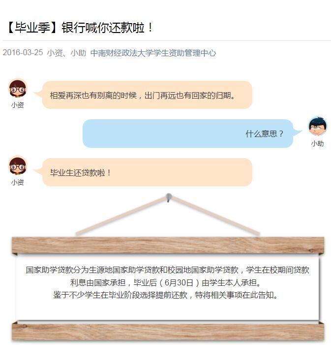此次诚信还款主题宣传教育活动通过学校主页、学生资助管理中心网站首页、微信公众号、资助管理系统进行了广泛地宣传。