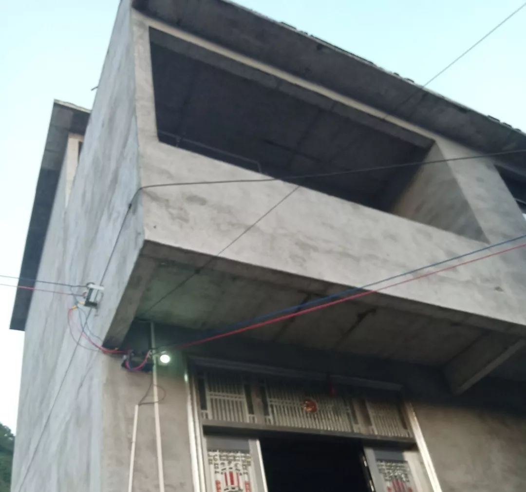 一段时间后,车子停在了小星的家门前,小星和她的妈妈以及弟弟妹妹都在家门前迎接我们,小星热情的招呼我们坐下。放置了书包后,我们便随着小星和阿姨去看她们的旧房子。“之前我们这里下了暴雨,老房子塌了,现在我们住的房子是不久前刚建的。”阿姨一边走一边跟我们说着话。是的,我们刚下车就发现了,她们的房子二楼还没有门窗,一副新房的模样。