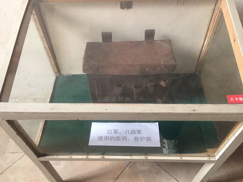 在这里,小分队成员深深感受到了革命先辈的不畏艰险、顽强不屈、坚持斗争的精神,八路军医疗药箱、救护箱以及当时居住的前堂屋等珍贵历史遗迹,还有门口写有入党誓词的巨大牌匾,给小分队成员深深上了一课。我们去参观的时候,不巧纪念馆正在翻新修缮,在热心的门卫叔叔的帮助下我们才得以破例进去参观。