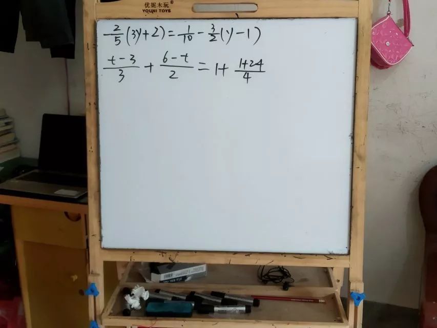 到达F同学家时看到家中立着一块小黑板,F同学解释是在给隔壁小孩补习功课。