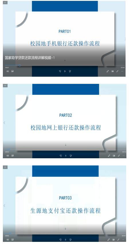 为了让学生更好地了解还款操作,资助中心老师按照还款类型及方式特意录制了三段还款操作讲解视频,小视频深受学生喜欢,会后学生纷纷表示要收藏。