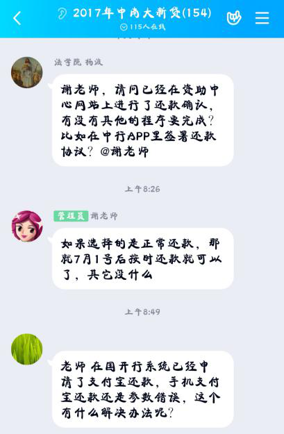最后的答疑环节十分温馨。学生们在线上踊跃提问,资助中心的老师们一一解答了许多还款相关问题。同学们纷纷表示想念学校,同学和老师,感谢学校带来这次贴心、细心、耐心的还款培训会。学生资助管理中心的老师们也代表学校,祝愿大家前程似锦、未来可期。