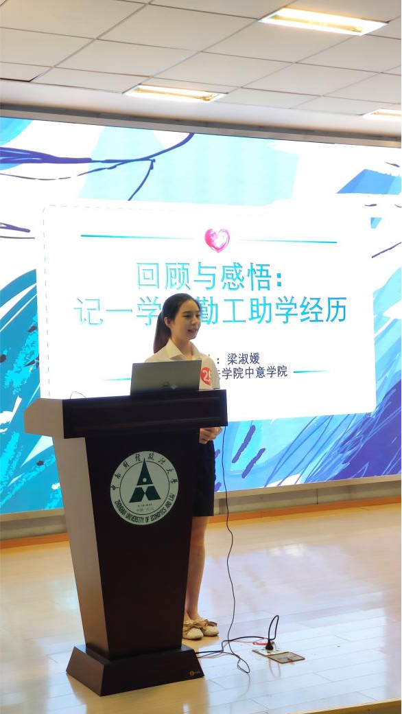 经学生申请、用人单位推荐,最终从1000多位勤工助学学生中选出30位优秀学生进入答辩环节。答辩选手们从工作经历、岗位职责、心得感悟、未来展望等各方面进行了个人展示。他们有的慷慨激扬,用初识-遇见-坚守-感恩串联起四年勤工助学经历;有的幽默风趣,以轻松诙谐的语言讲述了自己在勤工助学岗位上的日常工作;有的温情满满,动情地向大家分享了自己在勤工助学工作中的经验与收获。他们的答辩朴实诚恳,却熠熠生辉,展现着当代大学生昂扬奋斗、励志强能的精神面貌。