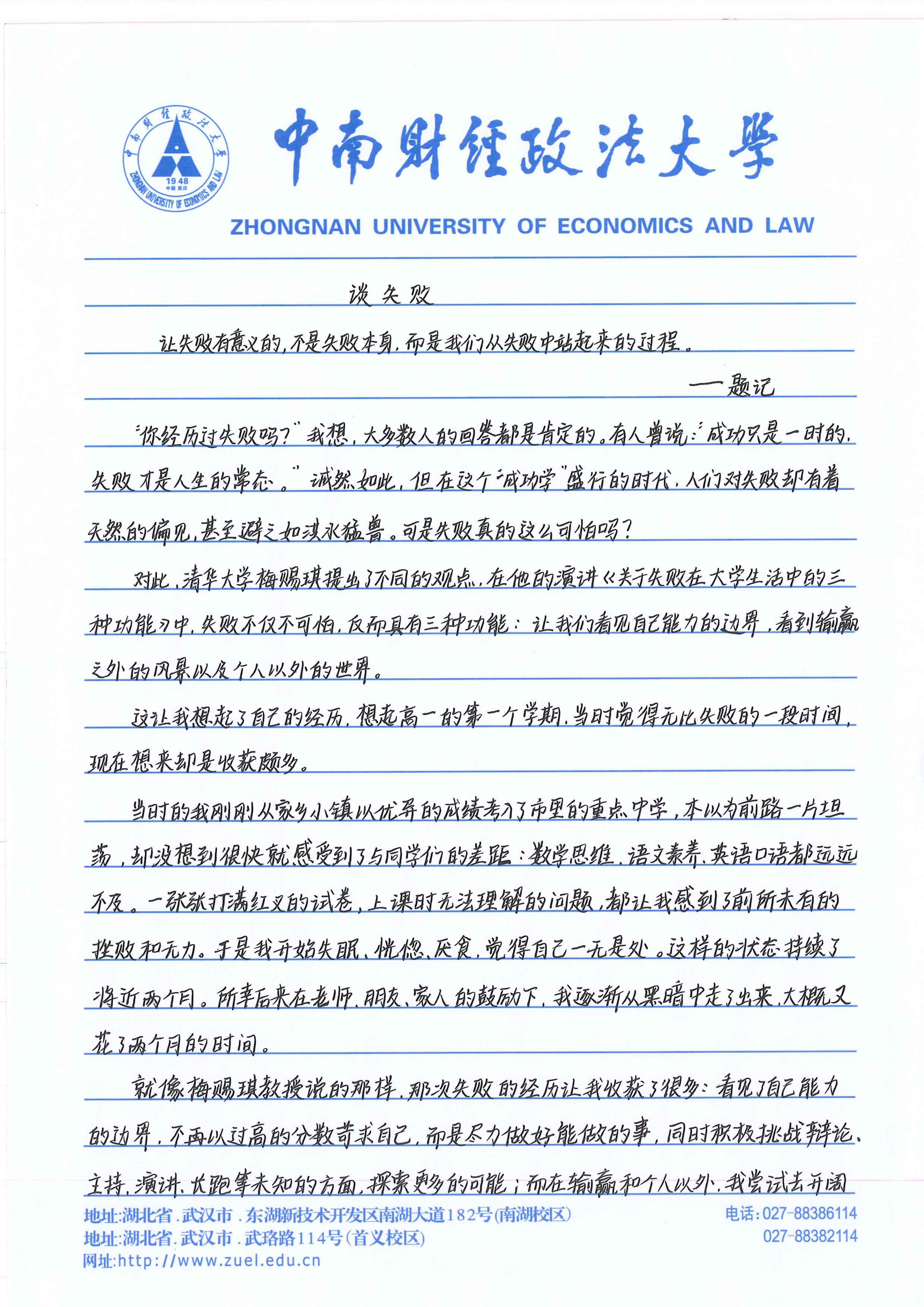 【梧桐树奖学金】法学院张雅婷——谈失败
