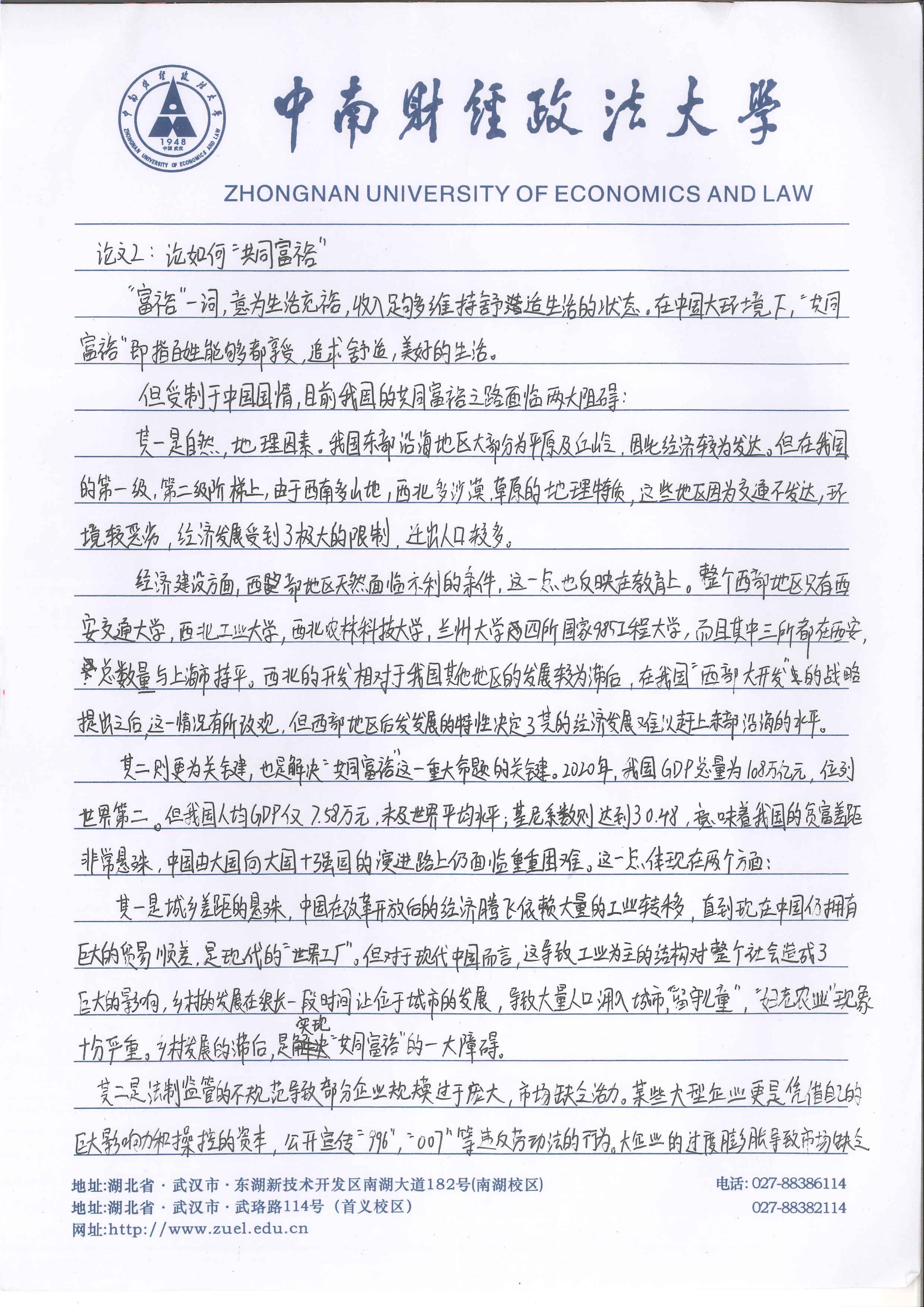 【梧桐树奖学金】金融学院徐祯彦——论如何共同富裕