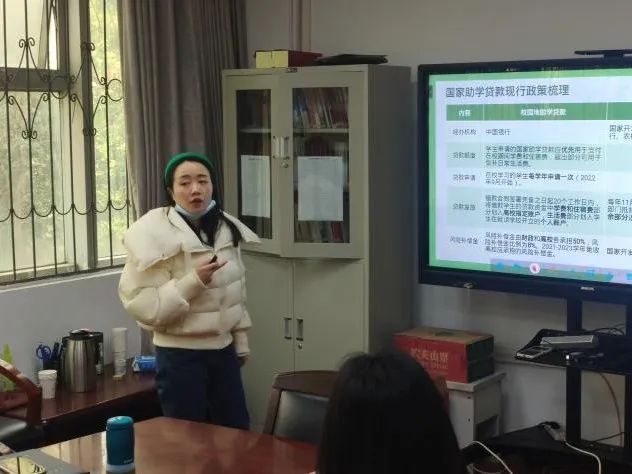 会议开始,学生资助管理中心的张老师就助学贷款的相关规定向我们展开了说明,详细介绍了助学贷款政策、申请流程以及毕业还款注意事项,并通过比对校园地助学贷款和生源地助学贷款的诸多差异,提醒我们在解决学生提出的问题时一定要注意二者间的区别,妥善解决学生的疑惑。