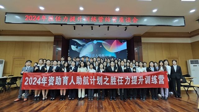学校举办“681”结营座谈会,全体学员身着由学生资助管理中心精心赠送的职业装,汇报展示个人成果与收获,分享感恩与成长。党委学生工作部副部长兼学生资助管理中心主任为优秀学员颁发荣誉证书,鼓励全体学生自立自信、学以致用、挺膺担当。