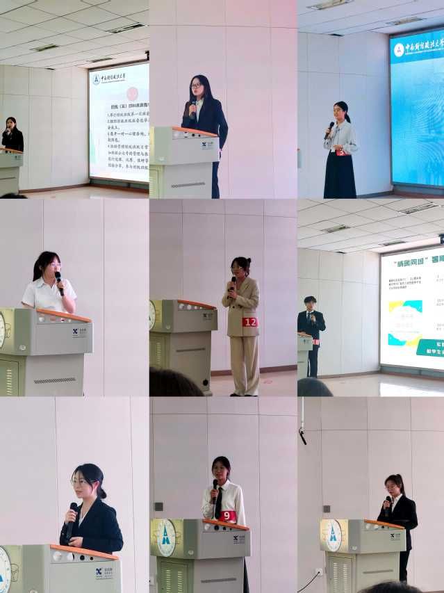 答辩会中,选手们分别从个人介绍、工作经历、自身感悟和未来展望四个方面对自己的勤工助学经历进行了总结展示。他们或因重大生活变故而开启勤工助学生涯,以不屈不挠的精神直面人生;或在勤工助学工作之中常怀感恩之心,以长年累月的捐款传递互助精神;或将自己的勤工助学故事形容为摘星之旅,在获得资助和成长的同时,自己也逐渐成为了一颗能够照亮别人的星。选手们的答辩充分展现了中南大学子自立自强、艰苦奋斗的优良品质和积极向上、朝气蓬勃的精神面貌。