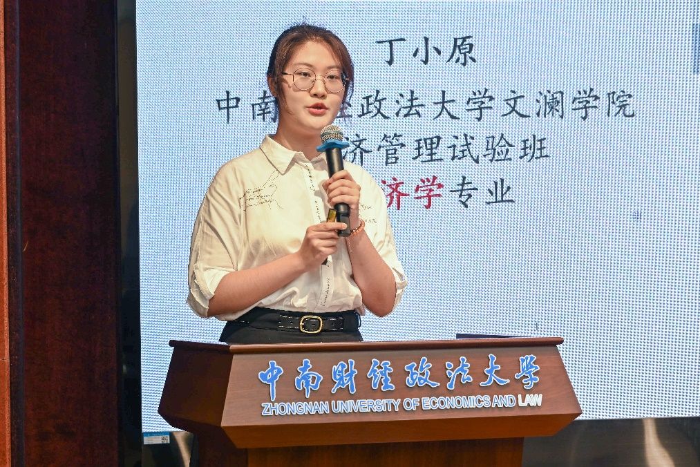 文澜学院的丁小原从“思想政治”、“学业成绩”、“学术科研”、“社会实践”四个部分展开介绍。大学四年里,她取得了优异的学业成绩,学分绩点高达3.98,并致力于学术研究,2023年在SSCI期刊中发表论文,并入选“香樟青苗计划”。她表示将在攻读博士期间继续深造,不断提升科研能力,积极从事科研工作。