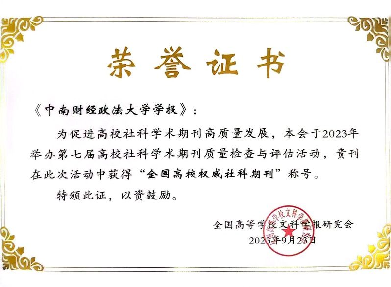 2023年9月23日至24日,全国高等学校文科学报研究会成立35周年庆祝大会暨研究会九届三次理事会会议在宜昌召开,来自全国高校期刊界的近650位代表参会。会上,全国高等学校文科学报研究会公布了第七届高校社科学术期刊质量检查与评估结果并举行了颁奖仪式,《米兰电竞·(中国区)学报》(以下简称“《学报》”)获评“全国高校权威社科期刊”称号,这是《学报》办刊以来首次获此殊荣。