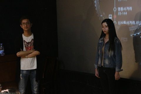 “设计狮如何不被产品狗和程序猿吊打?”首页幻灯片一出现便成为全场焦点,台下听众纷纷议论。罗涛从“做设计狮是一种怎样的体验?”、“为何设计狮长期被吊打?”、“设计狮如何不被吊打?”三个方面讲解“设计狮”的交互设计之路。讲座伊始,罗涛请全体起立,同玩石头剪刀布游戏,赢了罗涛的听众可以坐下,最后留下的听众将参与讲座中的互动环节。最终来自数媒1502班的梅雨进入互动环节。罗涛邀请她站在屏幕前面向台下听众,并鼓励大家畅所欲言为梅雨描述出现在屏幕上产品的使用效果,再让梅雨说出她所理解的内容,比较其与画面是否一致。罗涛说道,“通过这个环节让大家体验一下做‘设计狮’日常,把自己的想法说清楚有多不容易,也不要被表象所迷惑。”