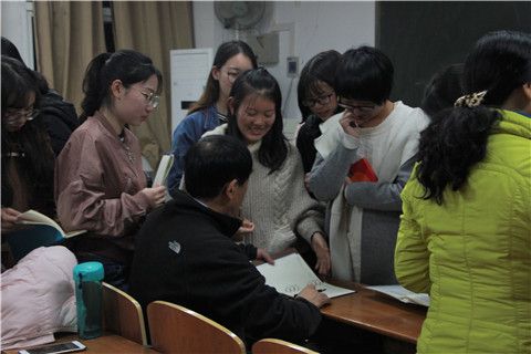 胡德才总结这三堂课其实是“当代文学课,文学创作课,人生哲学课”,并对卢新华再次表示感谢。卢新华人生经历颇丰,当过《文汇报》记者、踩过三轮车、也在赌场发牌,但最终依然回到文学创作的路上来,“悟山有顶弃作杖,觉海无涯放为舟”,这也是卢新华为同学们带来的最好寄语。