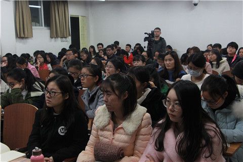 讲座现场几乎座无虚席,胡院长介绍主讲人,场下欢迎的掌声“经久不衰”。这次的主题是“读三本书,走归零路”。三本书分别是“有字之书”、“人生、自然及社会这本无字之书”以及“自我心灵之书”。