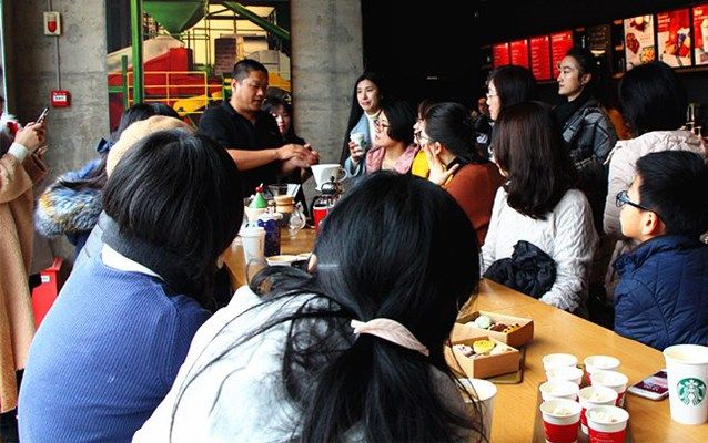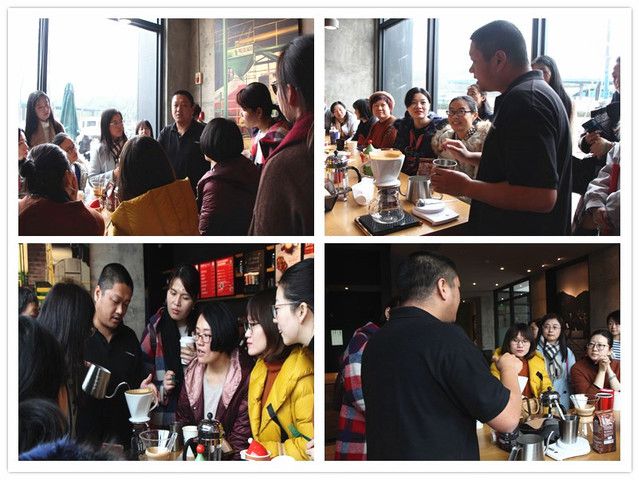 随后,Cory老师结合人们对咖啡知识的需求,从咖啡的起源、咖啡加工的传播、咖啡的分类、咖啡的香气评定,到咖啡研磨的要求、咖啡冲泡的方法、咖啡冲泡的器具、咖啡与健康的探讨及如何健康的享用咖啡等方面,为老师们做了详尽的讲解。此外,Cory还在现场教大家制作手冲咖啡,“手冲咖啡就是黑咖啡,今天我用的是哥伦比亚的咖啡豆,所以这杯咖啡的味道会有花果香和一点酸酸的味道,先把甜点放入嘴中,再喝一小口咖啡,这样的搭配会让你们对黑咖啡有不一样的味蕾感受。”再品尝完醇正的手冲咖啡之后,老师们纷纷就自己感兴趣的咖啡问题与Cory进行热烈互动,现场弥漫着咖啡的香气和老师们笑声,犹如一片欢乐的海洋。罗晓静老师和温强老师专业的提问和对咖啡知识的了解,更是得到了咖啡师的高度赞叹。