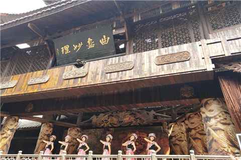 最后,实践队员们来到恩施女儿城。在这里,实践队员们参观了民俗博物馆并观看了一场展现土家生活风貌的大型情景剧。民俗博物馆向我们展现了土家族原住民生活图景,在部分展厅里,还有一些土家族传统手工艺人在专注地工作着。大型情景剧则依托民间传说故事,讲述了一位土家族女郎黄四姐与一位土家小伙儿相爱却又被迫分开,在克服重重困难后终修成正果的动人爱情故事。演出展现出众多土家族的生活细节,其间穿插了土家民歌、舞蹈和哭嫁等原滋原味的土家元素,彰显了最真实的土家文化的风格与特色。