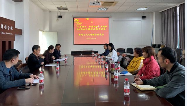 10月30日上午8:30,新闻与文化传播学院党委在文波五楼会议室召开领导班子调研成果交流会。学院班子成员、系主任、支部书记参加会议,会议由党委常务副书记黄俊雄主持。学工部副部长、校督察组成员吕宗瑛到会指导。