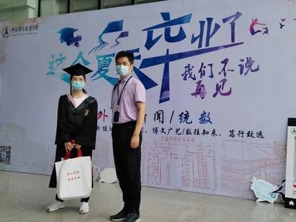 等待毕业生的不只有“盼君归来”的中南大,还有陪伴在他们几年学习生涯中的敬爱的老师们。受疫情影响,今年的毕业典礼非常特殊,并不是所有的同学都机会参加毕业典礼。为了弥补这个遗憾,新闻学院未能参加毕业典礼的2020届毕业生们纷纷与罗晓静院长合影留念,罗晓静院长为他们拨穗。