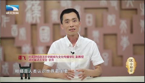 疫情期间,网上课堂成为人们获取知识的重要途径。2020年7月,“超星名师讲坛”通识类系列讲座策划组邀请谭飞专授“汉字的奥秘”这一课。在节目中,谭飞从“汉字游戏与汉字解析”、“汉字视角看词汇”、“汉字里的历史文化信息”三个方面进行解析,例证丰富、论述充分、条理清晰、层层深入,对“风”、“教”、“齿”、“户”、“间”、“婚”、“臣”等汉字的创制、字形的发展规律娓娓道来,分析我们习以为常的词语,挖掘汉字与汉语背后承载的历史文化信息,将汉语言文字的神秘画卷徐徐展开。