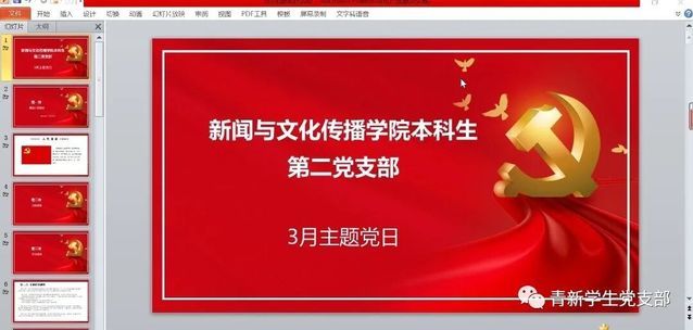 (通讯员赵冠宇)3月25日中午,新闻与文化传播学院本科生第二党支部(以下简称支部)成功开展了3月主题党日活动。胡可漪、李然晨馨、王旭阳等学生党员同志以及19级预备党员同志共同参加了本次活动。17级党员因升学就业等原因,参会人数达不到活动线下开展要求,此次活动改为线上开展,由胡可漪同志主持。
