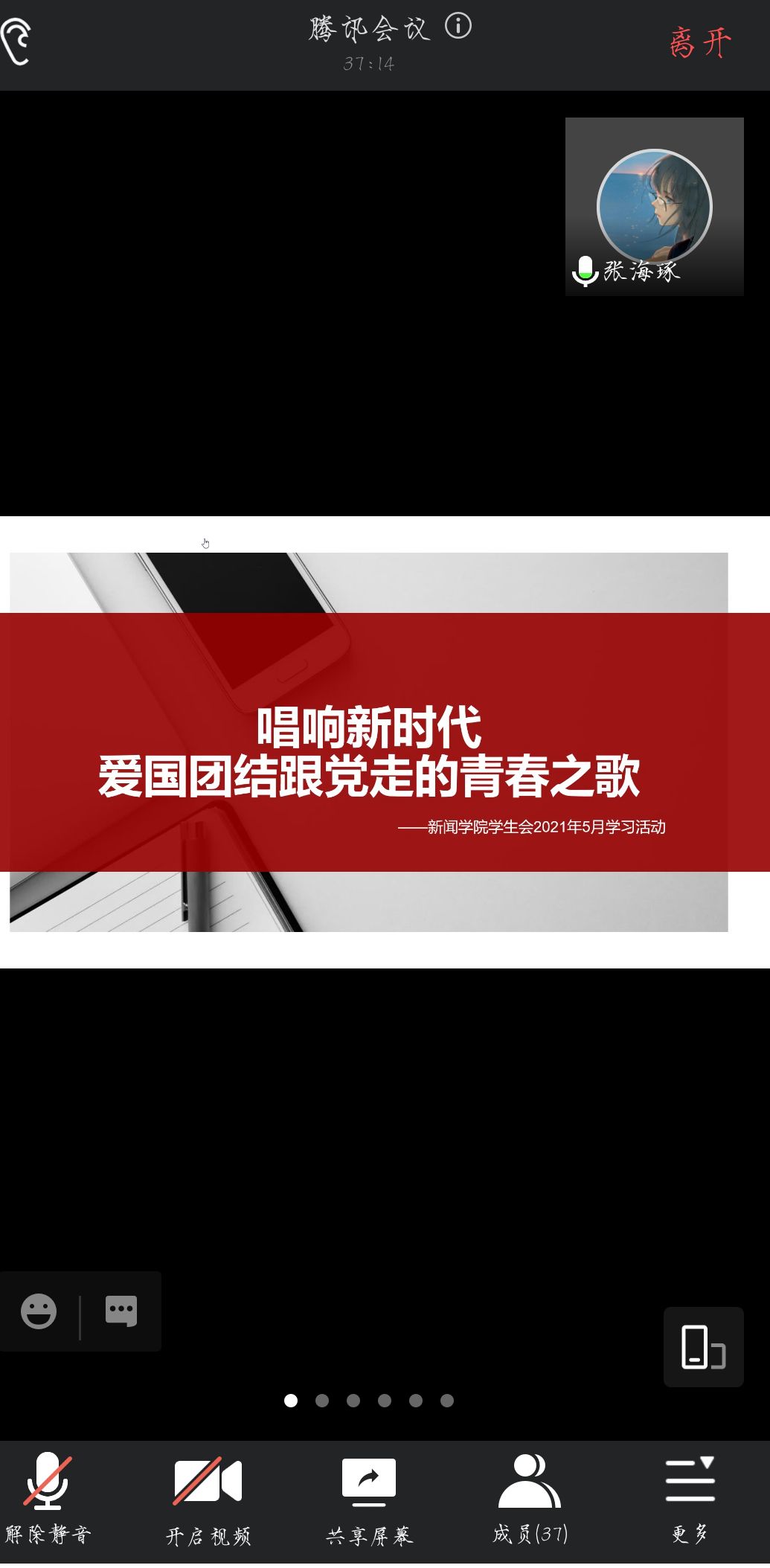 (学生记者 陈家豪)5月29日晚,新闻与文化传播学院(以下简称新闻学院)学生会5月学习活动在腾讯会议平台召开。分团委书记韩桢,学生会各部门部长及干事共计34人参与。本次活动由秘书处部长凌廷鑫主持。