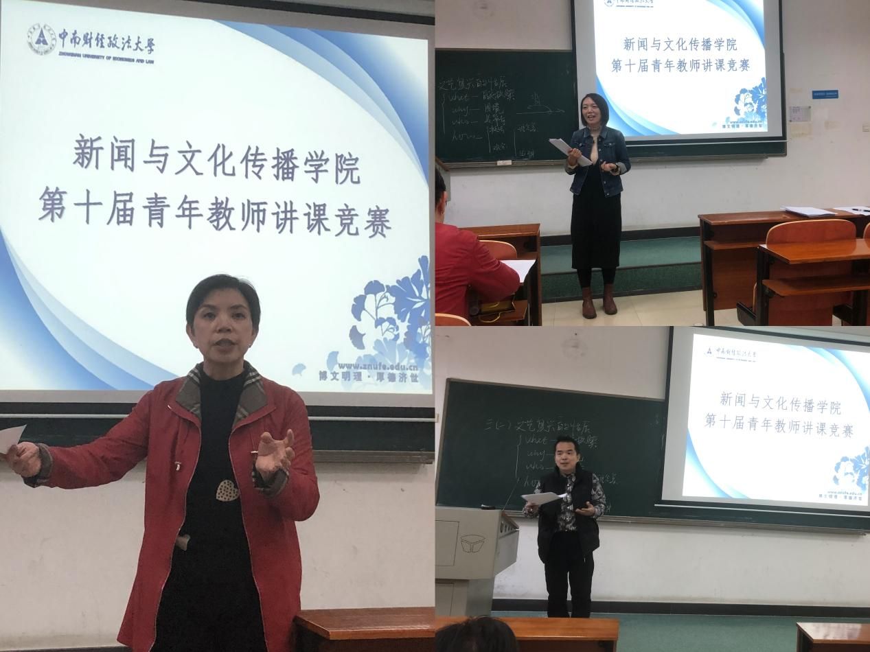 为进一步积累教学经验,不断提高业务素质,促进教学质量和教学水平提高,11月18日下午,新闻与文化传播学院(简称“新闻学院”)在文波304举行第十届青年教师讲课竞赛学院复赛。经过各系选拔,新闻系秦琼、王继周、侯雨,中文系刘成敏,艺术系李娟五位老师进入此次学院讲课竞赛。