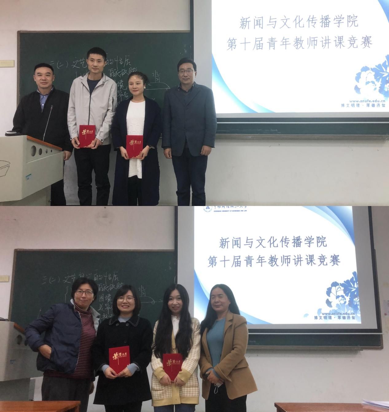 最终,经评委打分,新闻系王继周和艺术系李娟老师获得学院青年教师讲课竞赛新星奖。学院党委书记黄俊雄、评委老师朱恒、刘兰珍和涂轶菲为获奖选手颁奖。