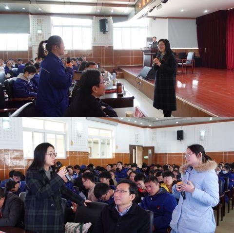 在互动交流环节,同学们纷纷就专业选择和未来就业等自身关心的问题进行提问,现场气氛活跃、热烈。